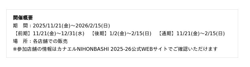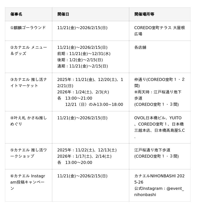 カナエルNIHONBASHI 2025-26 実施概要