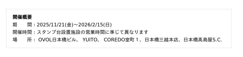 問合せ先:一般社団法人日本橋室町エリアマネジメント https://muromachi-area.jp/contact/