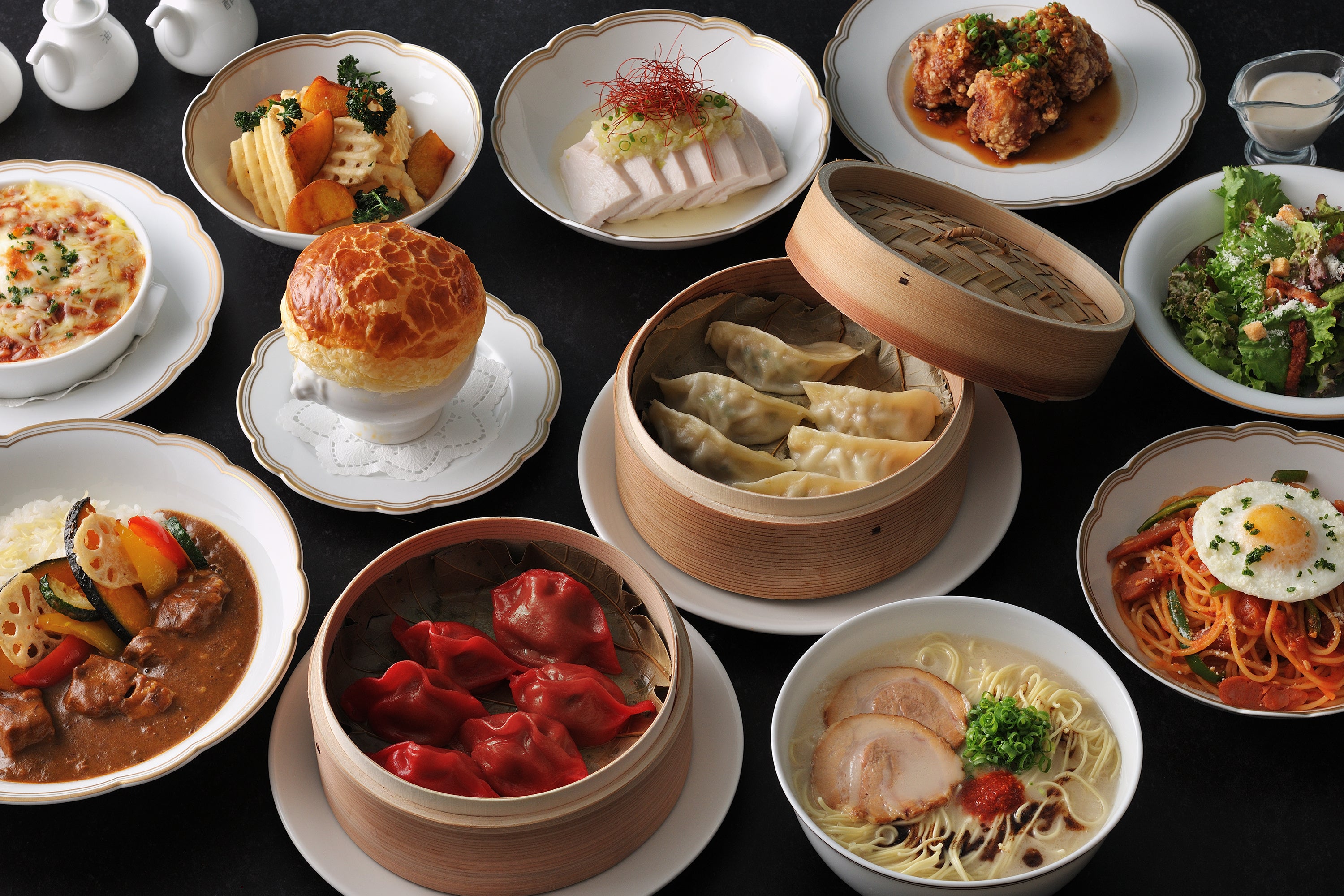 OMOのうしろにある数字はサービスの幅を意味し、OMO7はフルサービスホテルとして、食の選択肢が豊富です。OMOブランド初の形態となる「OMOベーカリー」では、朝はカフェテリア形式でパンを中心のセットメニュー、昼から夜にかけてはカレー伝来の地である横浜になぞらえて特製のカレーパン5種類をメインに販売。ランチやカフェだけではなく、夜は「パン飲み(*2)」も楽しめます。「OMOダイニング」では、一つ一つの素材や提供方法にこだわり、贅沢な1日の始まりとなる朝食ビュッフェ「Yokohama Morning Specialties」を提供。夜は、横浜らしいナポリタンやドリアの他、オマール海老の麻婆ポットパイや、スパイシーなラムを包んだ赤の餃子など中華メニューも用意しており、街歩きの前後に「ちょい飲み・ちょい食べ」が楽しめるラインナップとなっています。