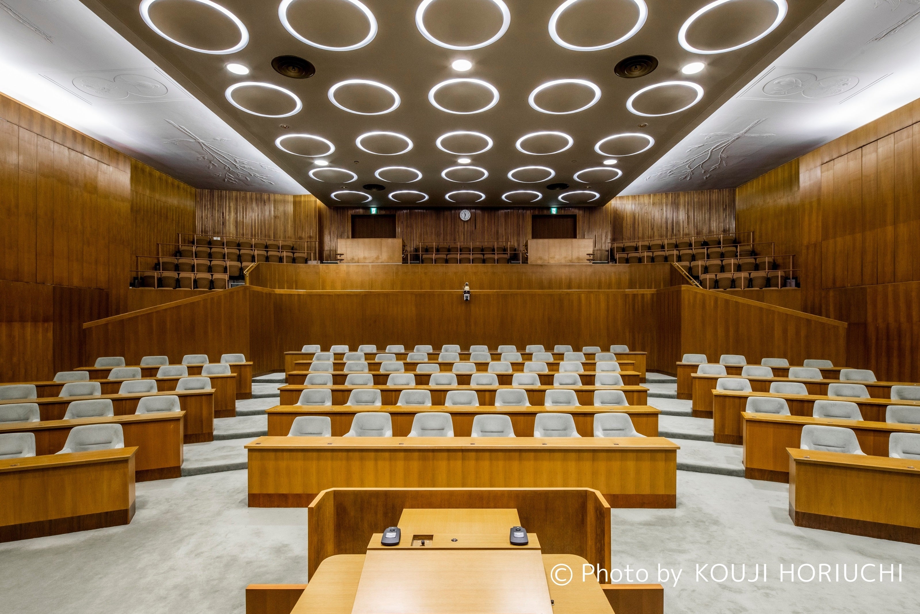 旧市会棟本会議場の緑色の議員席