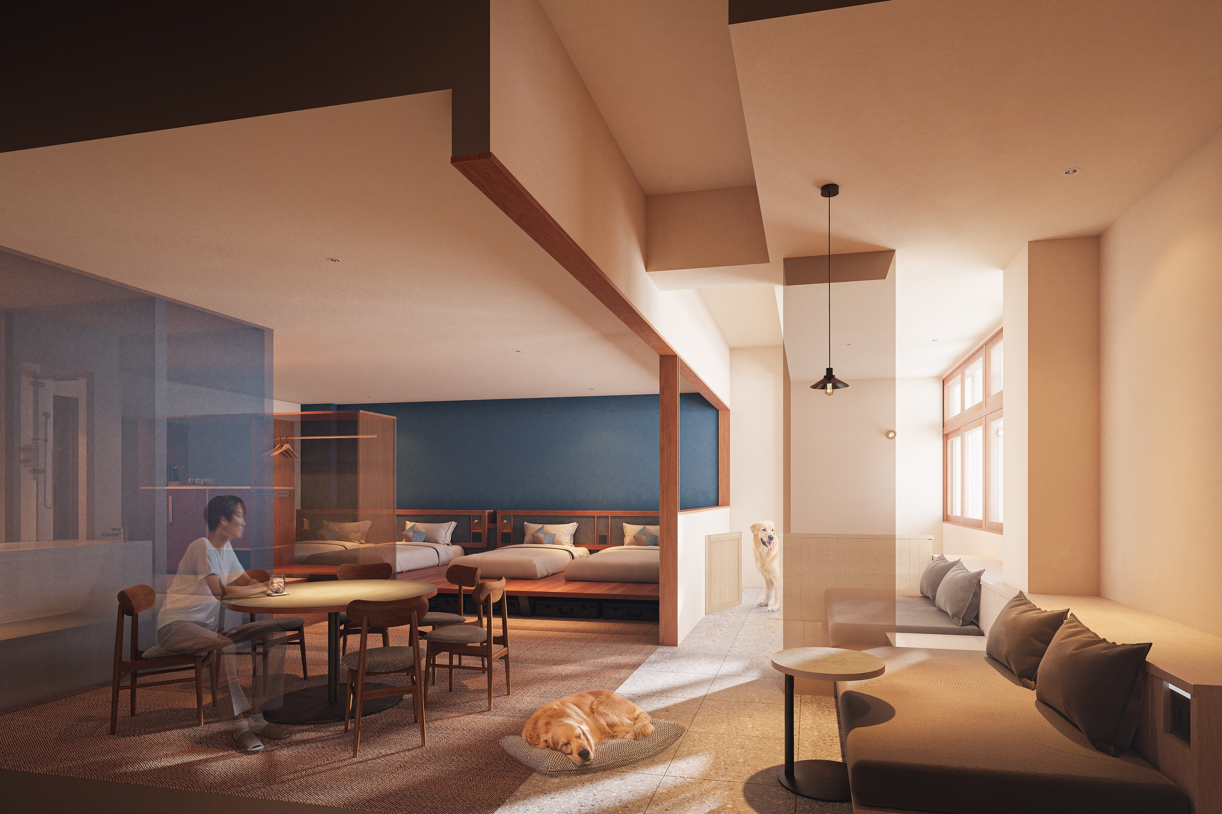 愛犬との旅に最適な街、横浜。公園や海辺など、散歩に適したスポットが多いこの地で、OMO7横浜は愛犬との宿泊を歓迎します。客室タイプは、「ドッグフレンドリーダブルルーム」・「ドッグフレンドリーデラックスルーム」・「ドッグフレンドリースイート」の全3タイプを用意。中でも、ドッグフレンドリースイートは、6名定員に加え、小~大型犬2頭まで一緒に過ごせるため、家族3世代やグループ旅行など多様な旅のニーズに応えられます。また、屋外ドッグランと屋内ドッグラウンジの両方を備えた「OMOドッグガーデン」では、ドッグランで思いきり遊んだり、屋内で飲食を楽しみながらリラックスしたりと、愛犬と心ゆくまで思い思いの時間を過ごせます。