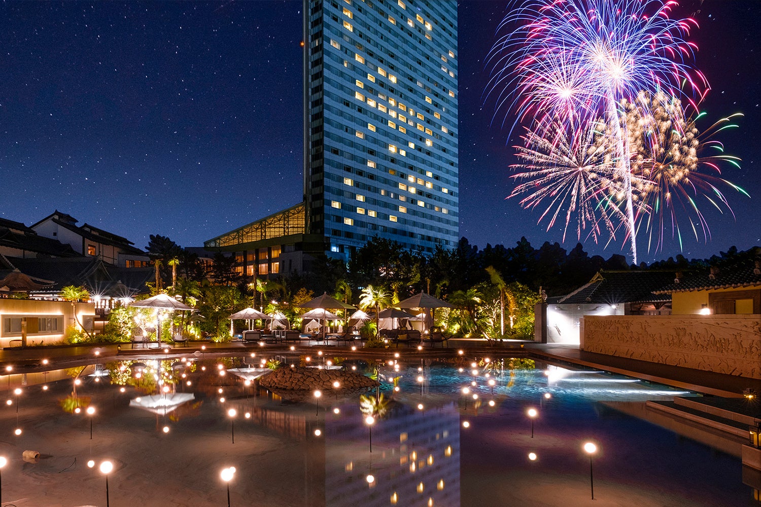 フェニックス・シーガイア・オーシャン・タワーの全客室および「THE LIVING GARDEN」では、打ち上げ花火にあわせて音楽を配信。夜空に咲く花火と音楽が織りなす幻想的なひとときは、まるで特別な冬の夜の魔法。友人や大切な人とともに、光と音に包まれたロマンチックな冬のナイトリゾート体験をお楽しみください。