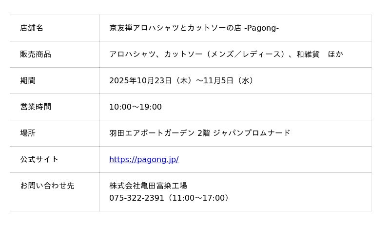 [店舗]Pagong京都・本店/Pagong京都・三条店/Pagong京都・祇園店/Pagong千葉・成田空港店