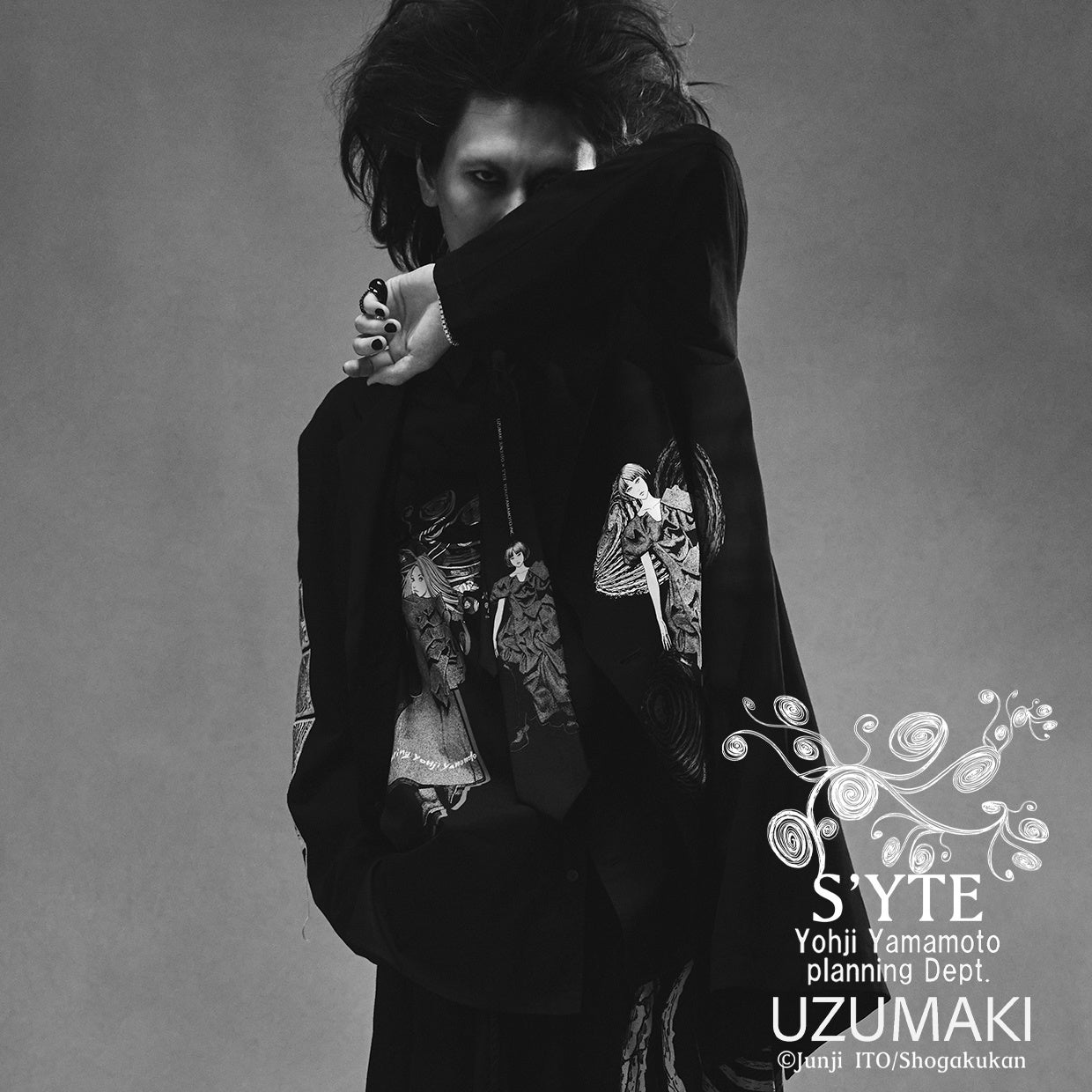 ■1F: S'YTE × Junji ITO -UZUMAKI-「アンチモード」をテーマに掲げ、ヨウジヤマモト社らしいカッティングとシルエットを受け継いだS’YTEと、日本を代表するホラー漫画家である伊藤潤二氏とのスペシャルコラボレーション。 3度目となる本コラボレーションでは、伊藤氏の代表作『うずまき』から抜粋した新たなデザインや、S’YTEならではのディテールとテクニックを駆使し、本コラボレーションのための特別な描き下ろしをデザインへ落とし込んだ新作が登場。初日には、初日には伊藤潤二氏抽選サイン会イベントを実施