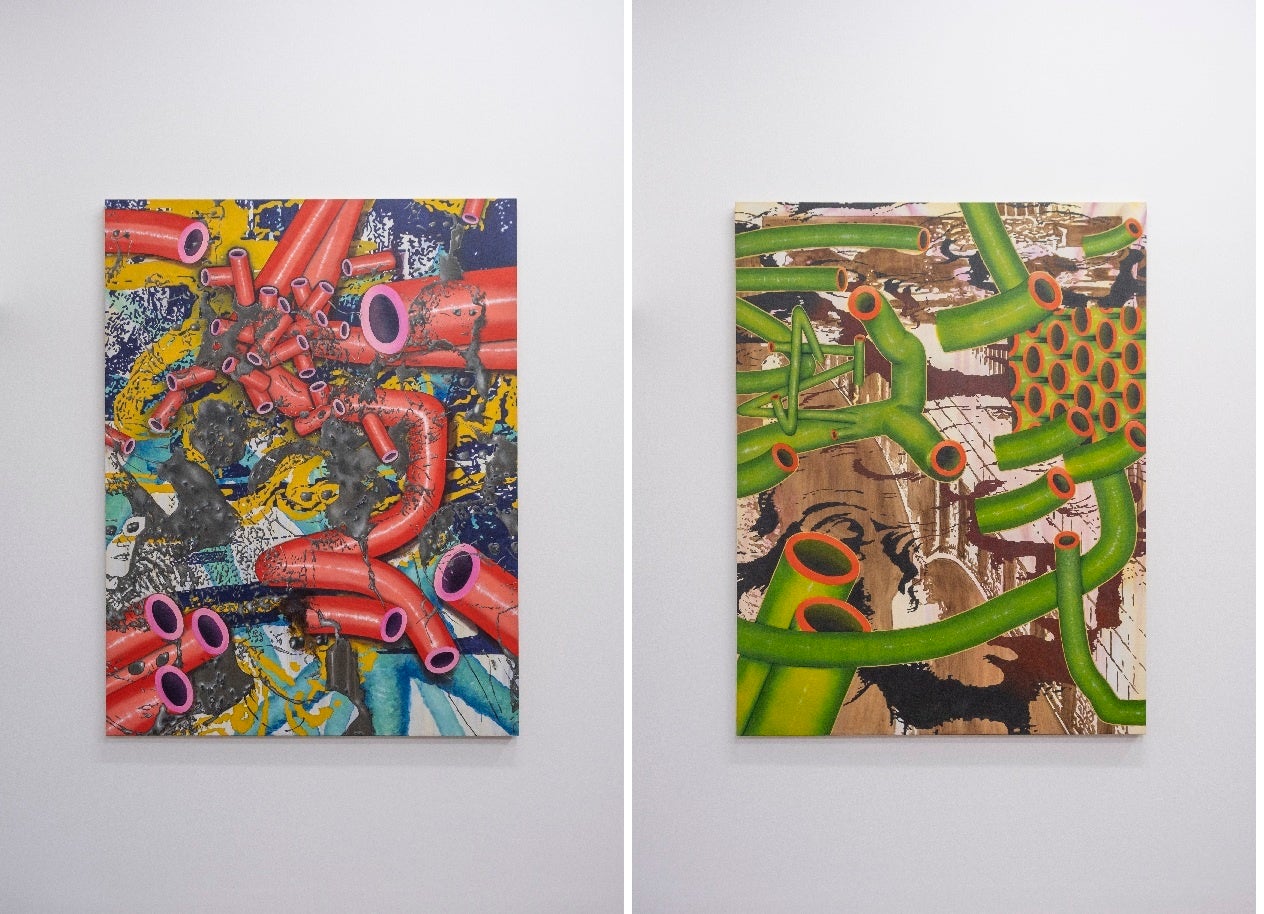 ■2F:「OIL SELECTION vol.52 柳澤貴彦」展「Phantascape」柳澤貴彦氏は、風景写真やインターネット上の画像、複数のイメージをレイヤーとして重ねた風景画、そこから派生したセラミックの立体作品を制作。これらを還元して「風景」に戻すことを試みる展示を展開。