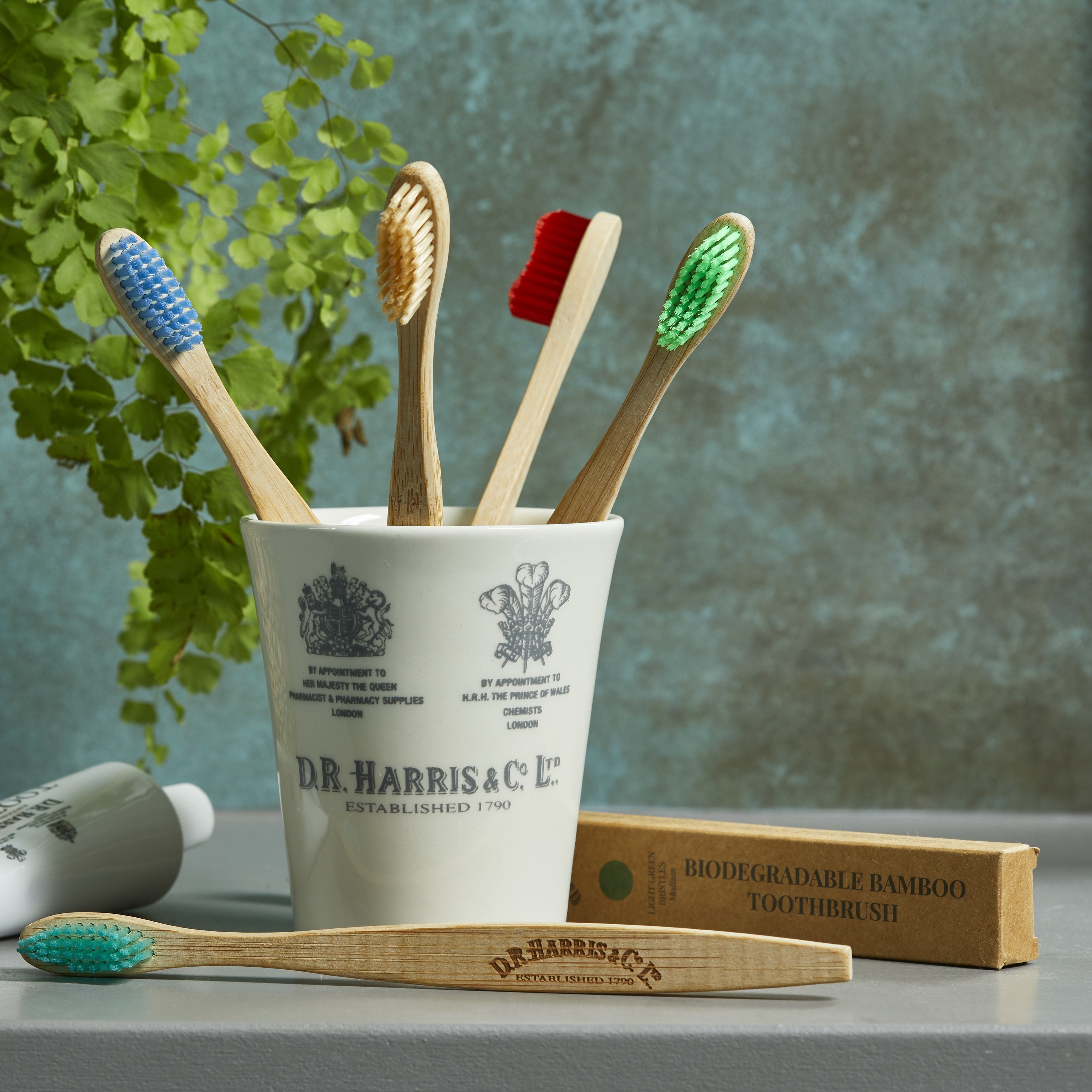 バンブーハブラシ柄の部分が竹素材で出来た環境に配慮したハブラシ。柄ではなくブラシ部分で色分けした遊び心あるオシャレなカラーハブラシです。色ごとで使い分けできるため、家族全員で使用するのにも便利なアイテムです。全て硬さはミディアム。