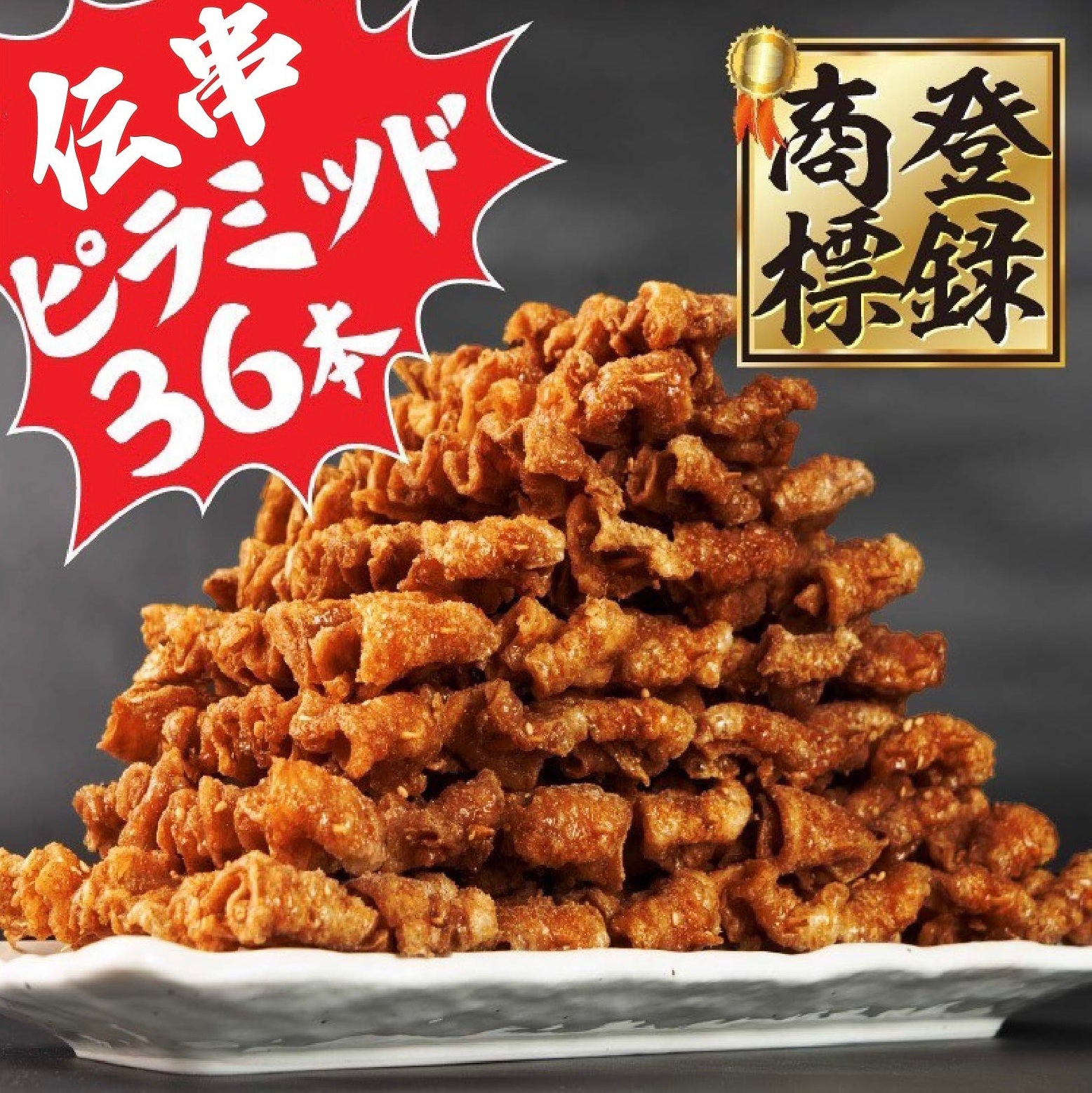 伝串を、10本(4段)、21本(6段)、36本(8段)と、ご注文いただくと、綺麗なピラミッド状で提供され、『伝串ピラミッド』は新時代の風物詩となりました。SNS上では毎日投稿頂くほどの人気の商品です。