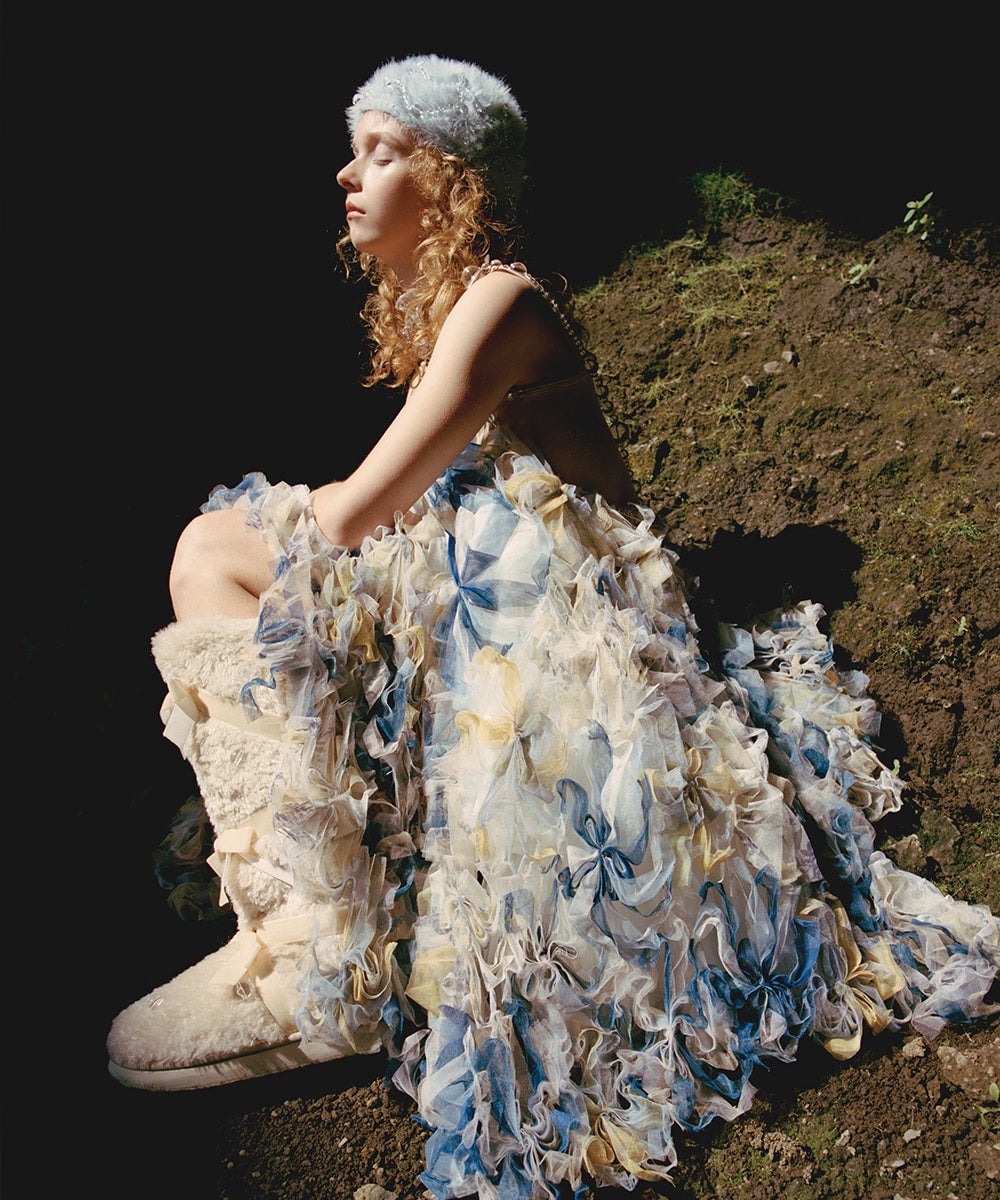 スーザン・ファンは、セントラル・セント・マーチンズを卒業後の2017年に、自身の名を冠したブランド〈SUSAN FANG〉を設立。現在はロンドンを拠点に活動しています。Forbes 30 Under 30 に選出されました。「知覚」と「数学」をテーマに、革新的なテキスタイル、色彩、シルエットを融合させた、芸術的で独創性あふれるウェアやアクセサリーを生み出し、「光、空気、感情や幻想」といった無形の美の知覚や、自然がもつ本能的な魅力、そして無限に広がるフラクタルの概念から着想を得て、繊細に表現しています。トレンドやスタイルにとらわれることなく、デザインの枠を超えて芸術的な幻想を追求すると同時に、テキスタイルの革新やデザイン・生産における持続可能な手法の探求にも注力。