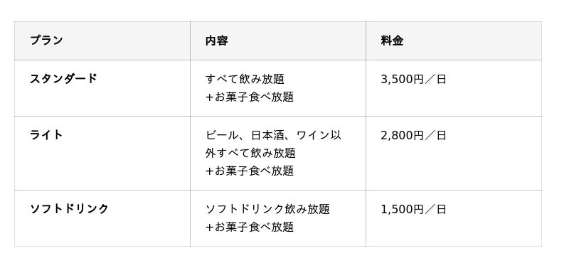 - すべてのプランで飲み放題。また、お菓子も食べ放題