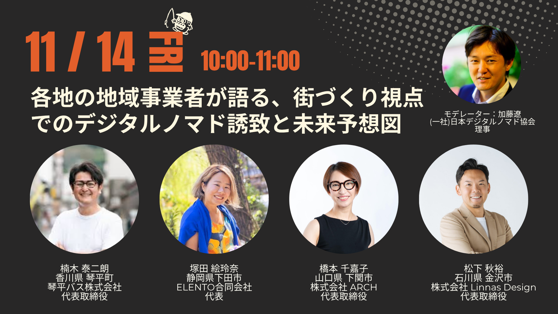 ホテル、インフラ、不動産など、それぞれの地域事業者としての立場でまちづくりに取り組む全国の地域プレイヤーが、デジタルノマド誘致について意見交換を行います。また、ローカルとグローバル人材をつなぐコミュニティマネージャーの役割について世界各国のコミュニティマネージャーが議論します。