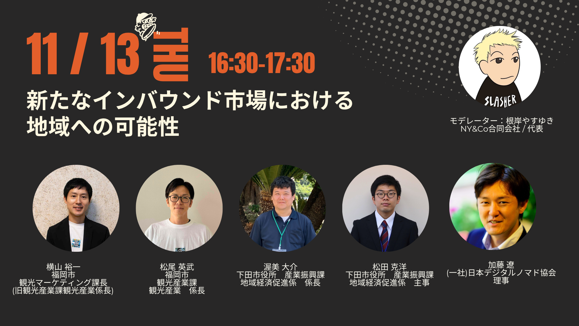 外国人起業家・行政、それぞれの視点から、新たなインバウンド市場の取り込みや彼らとの地域未来共創についてパネルディスカッション形式で意見交換を行います。