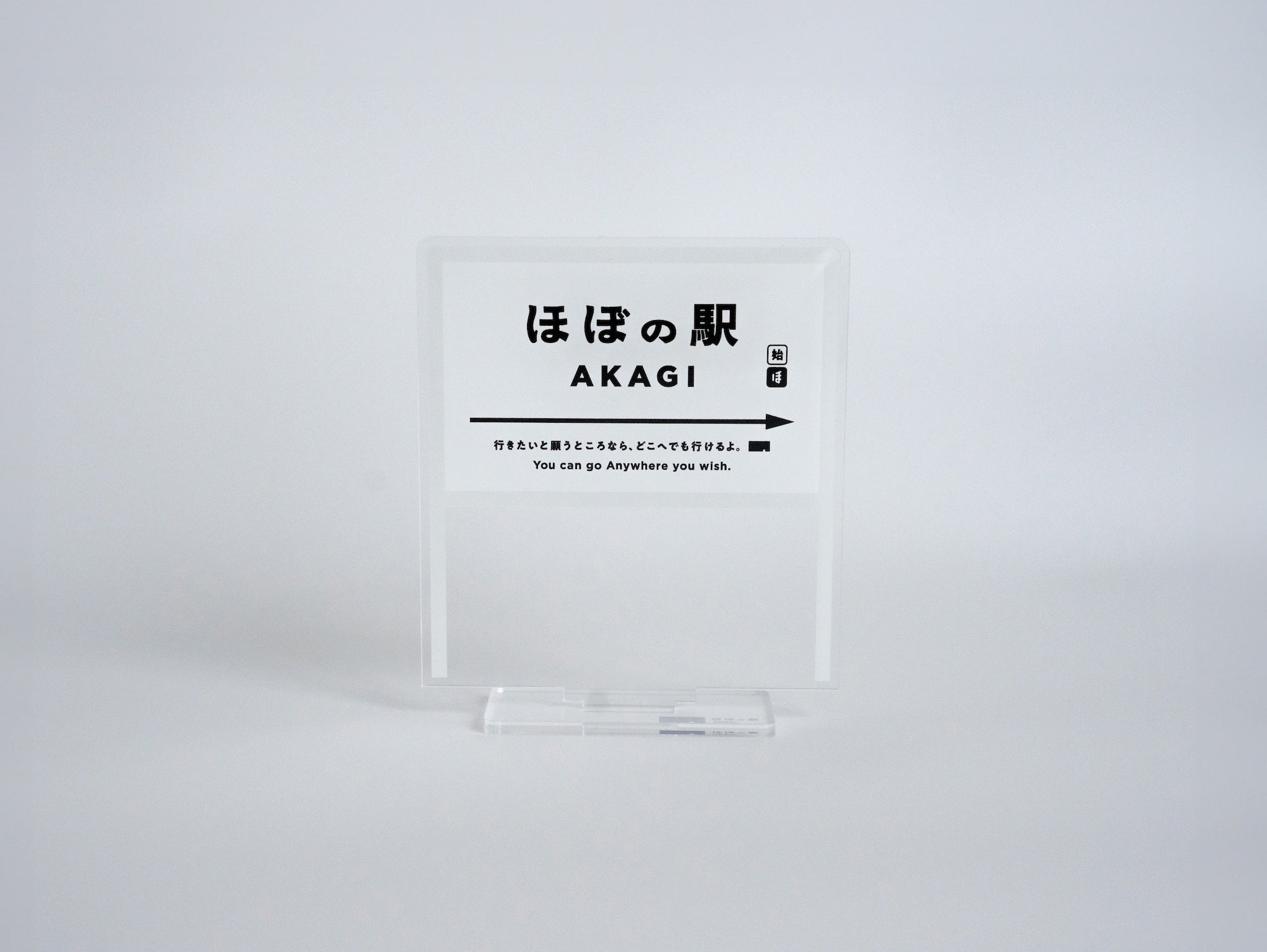 「ほぼの駅 AKAGI」の建物は、ながくレストランとして活用されていたものを、どこか懐かしい駅舎をイメージして改修しています。入口横には新たに「ほぼの駅 AKAGI」駅看板をフォトスポットとして設置しました。駅の椅子をイメージしたベンチや、改札ボックスのような販売カウンターなど、全体的な駅らしいムードもぜひご覧ください。