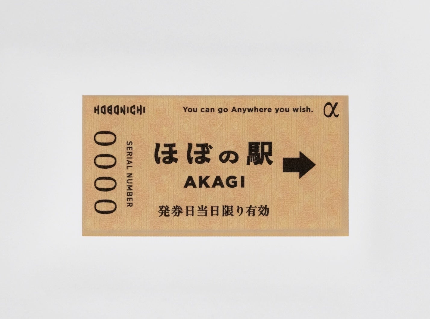 もともと駅だった建物を、ほぼ日が運営するので「ほぼの駅 AKAGI」。旧駅舎の骨格や外観を残しつつ、駅らしさを意識しながらリニューアルしました。施設のロゴも切符をモチーフにしたもの。グランドオープンは、2026年春の予定ですが、2025年11月1日より「α[アルファ]オープン」という呼び方で試験開業をはじめます。赤城山に来たら気軽に立ち寄れて、絶景を見ながらのんびりでき、この場所ならではのおいしいものをたのしめて、ほぼ日のアイテムも買える場所です。ぜひお立ち寄りください。オープン記念企画として、11月1日13時30分より、先着1101名様に、特製の記念切符を差し上げます。