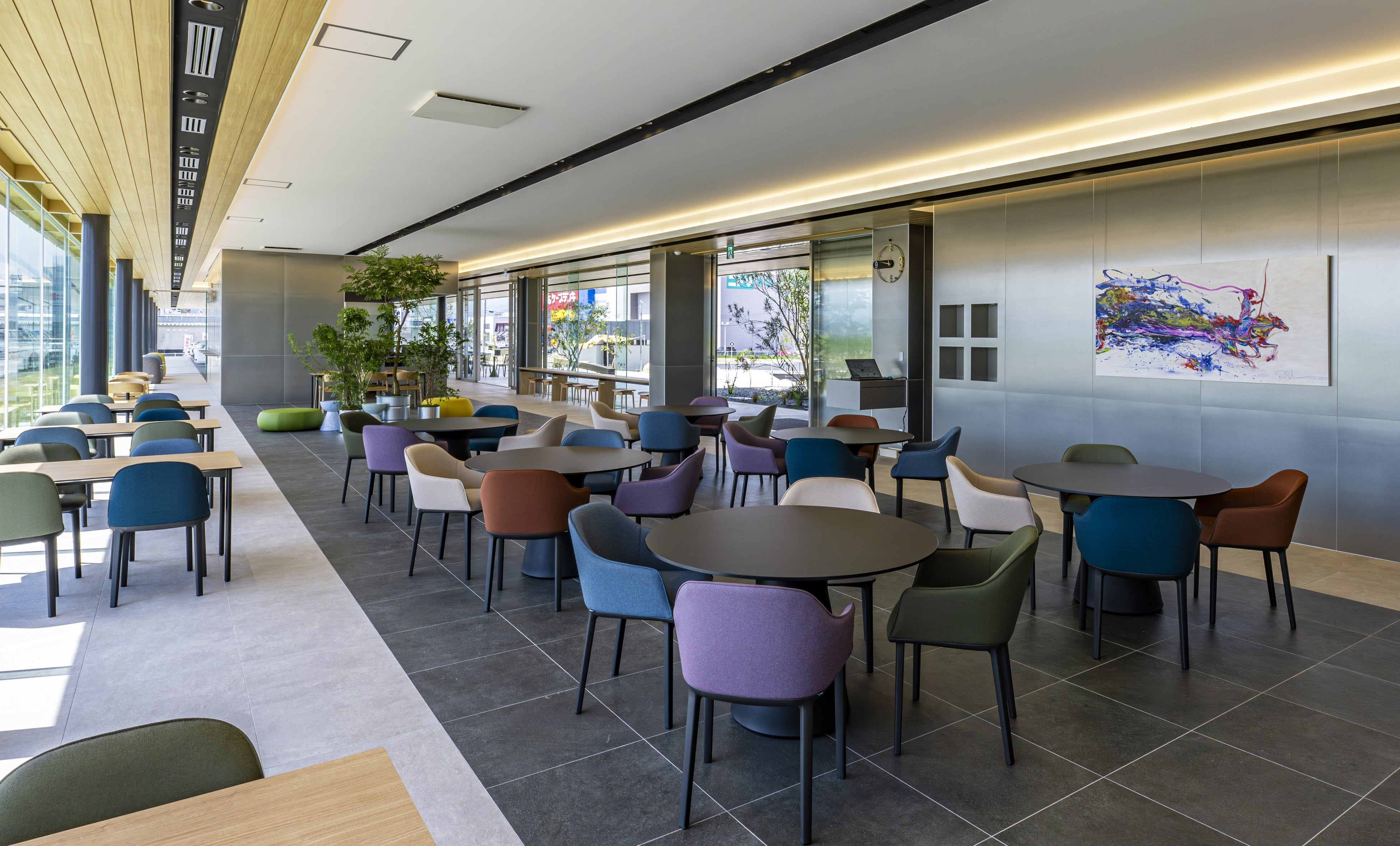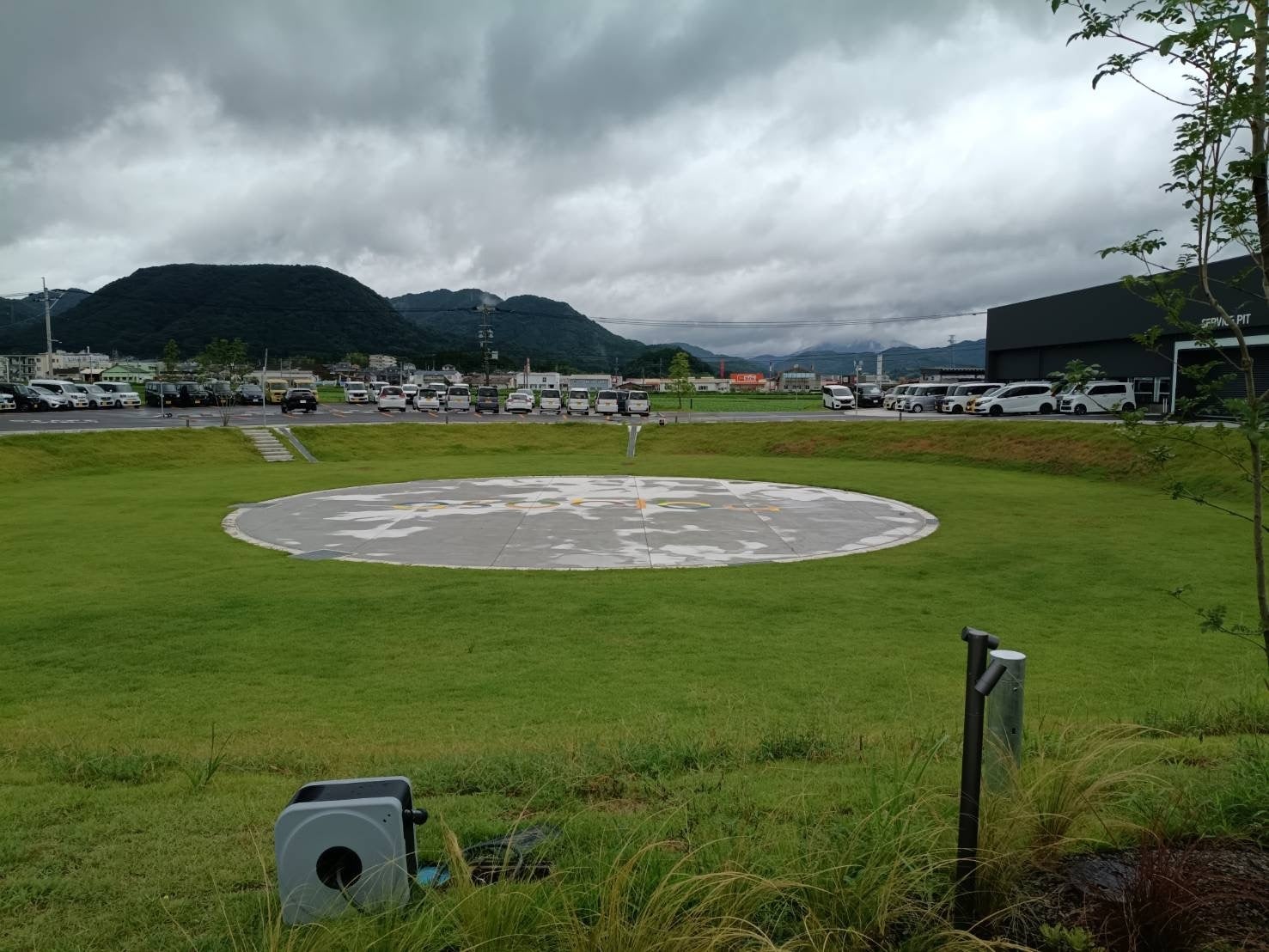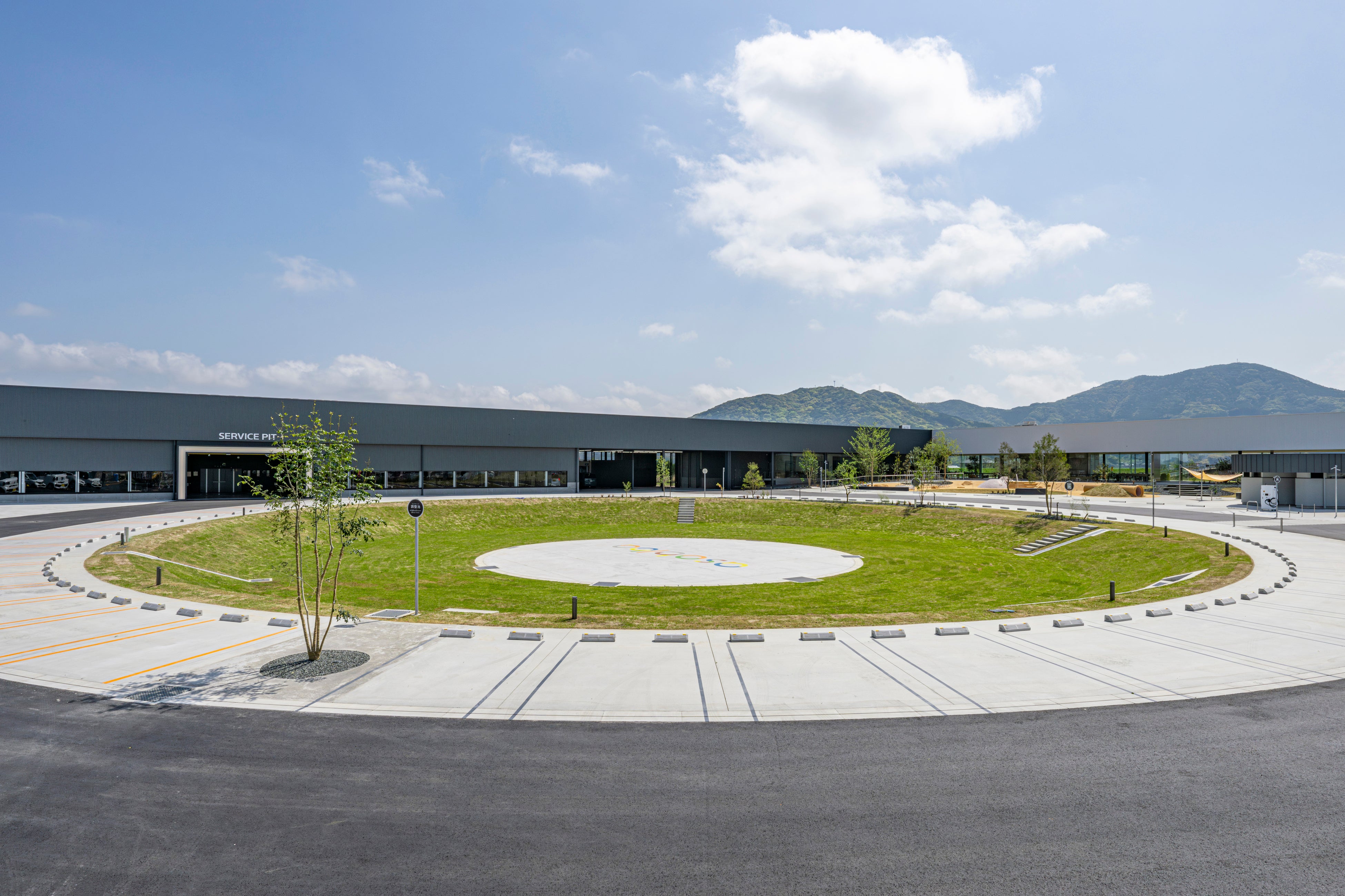 ショールームや整備工場もありますが、地域の方々が楽しめる憩いの場を目指して遊水池機能を持つ公園や、カフェを併設しています。10月はストライダー大会や、サッカーで熱戦が繰り広げられるサガン鳥栖の試合を"asobiba"の芝生に囲まれた円形広場を活用したパブリックビューイングと屋台で街に賑わいを生み出し、アートフェスティバル、フードフェスティバルなど、続々と面白い企画を、どんどん武雄の"asobiba"から楽しいワクワクが飛び出す企画を準備中です。ぜひ、一度、武雄の"asobiba"へ遊びに来てください。