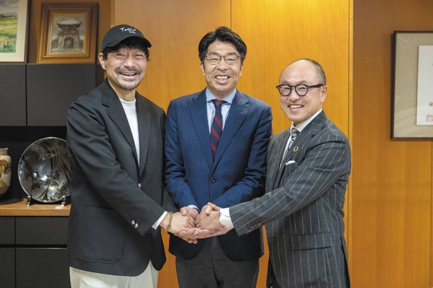 左から『asobiba』プロデューサー田中氏 小松武雄市長 (株)ホンダカーズ中央佐賀 大橋社長