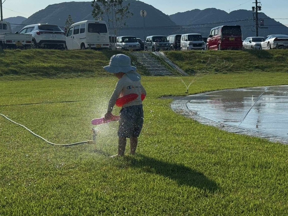 治水対策の貯水池を利用して7月、8月は酷暑の続くなか、『asobibaみずあそび』と称し水遊びイベントを開催しました。暑さ対策をしながら多くの子供たちが参加してくれました。