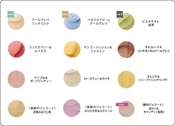 商品名:香るティージェラート価 格:ダブル ¥700(税込)種 類:12種類からお選びいただけます。