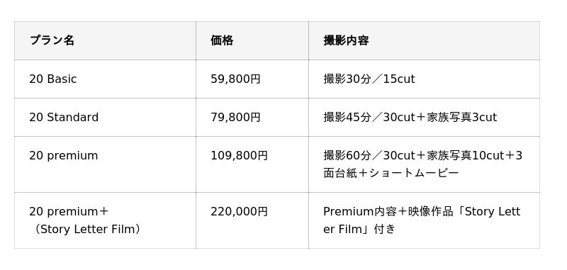 一枚の写真と一本の映像で、「ハタチ」の感情を永遠に残す特別なプランです。