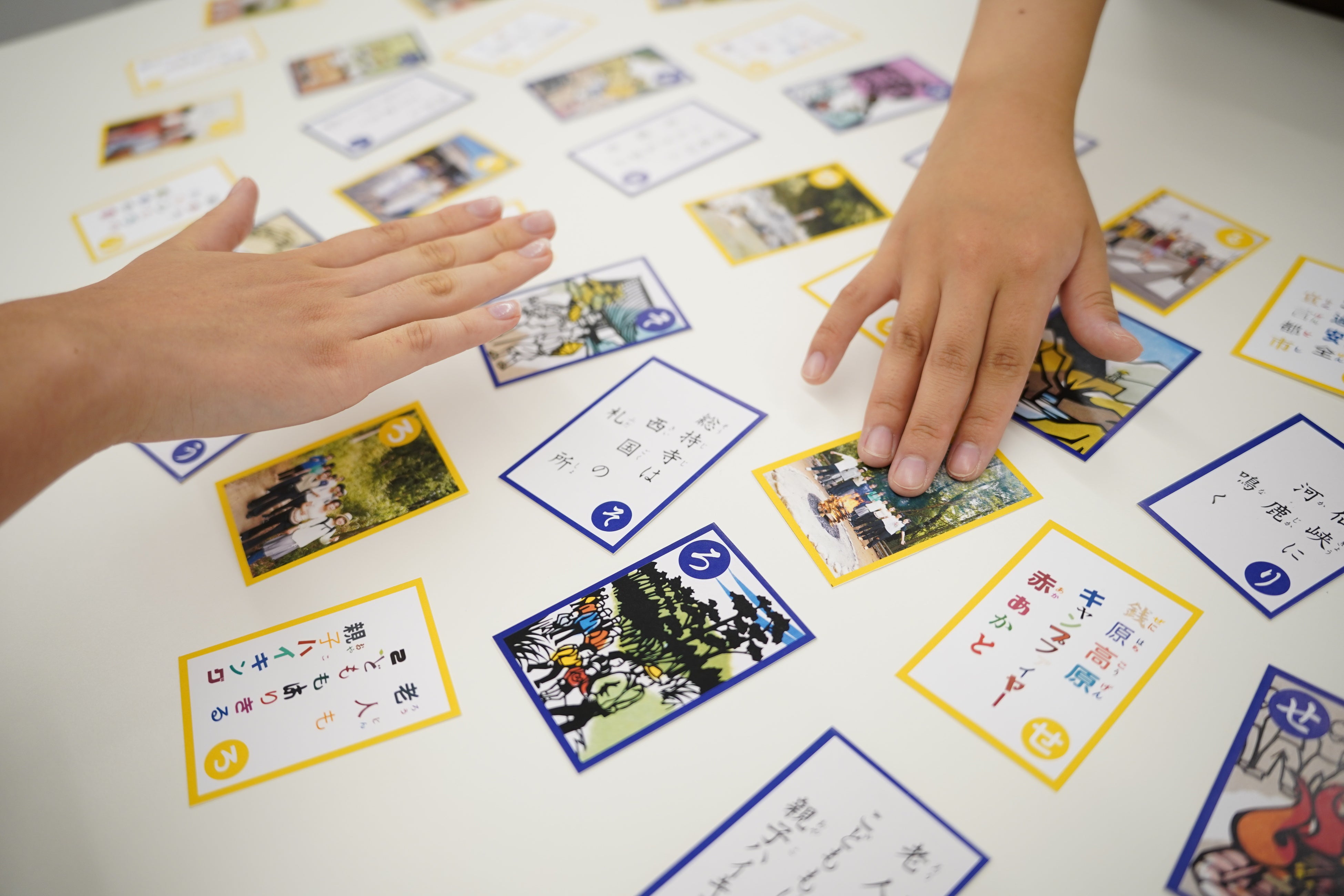 約50年前に作られた「こども自身がつくる いばらきの郷土かるた」を学生がリメイクした作品。 茨木市内の名所を訪ねて撮影し、看板の文字を切り取って読み札とすることで、時代を超えた交流と地域の営みの歴史を表現している。