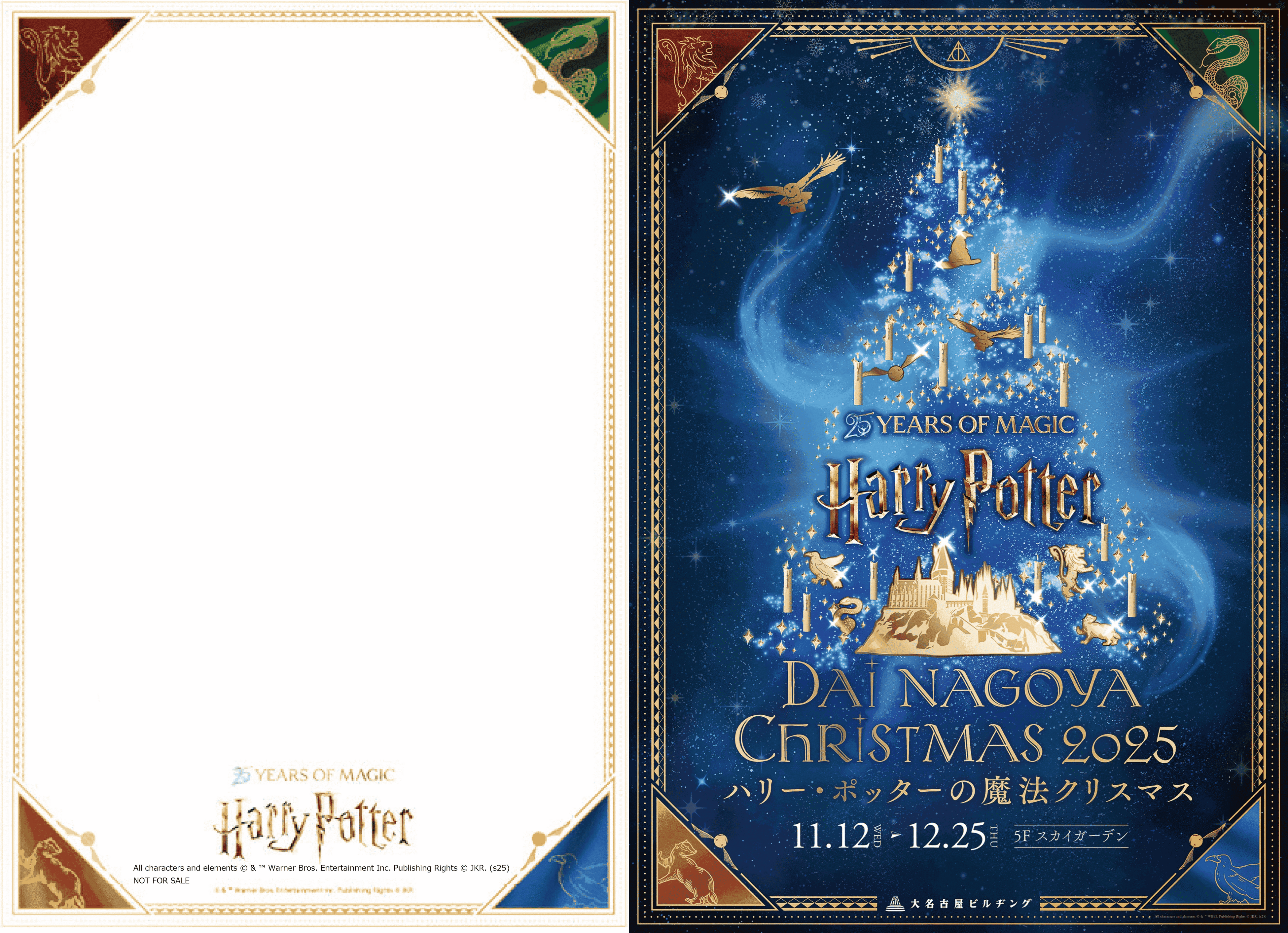 大名古屋ビルヂング(所在地:愛知県名古屋市)は、ワーナーブラザース・ディスカバリー グローバル・コンシューマープロダクツとのパートナーシップのもと、2025年11月12日(水)から12月25日(木)の期間中、大名古屋クリスマスイルミネーション「ハリー・ポッターの魔法クリスマス」を開催します。東海地区で「ハリー・ポッター」とコラボレーションしたクリスマスイベントを開催するのは大名古屋ビルヂングが初めてとなります。世界中、世代を超えて愛される「ハリー・ポッター」シリーズ。来年は、映画『ハリー・ポッターと賢者の石』が公開から25周年を迎えるメモリアルイヤーです。 5Fスカイガーデンでは「ハリー・ポッター」の世界観を感じられる高さ約4mの天空のクリスマスツリーをはじめ、館内では「ハリー・ポッター」のフォトスポットや、ポップアップストアの開催、オリジナルポストカードのプレゼント、Instagramキャンペーン、飲食店ではコラボレーションメニューを提供します。