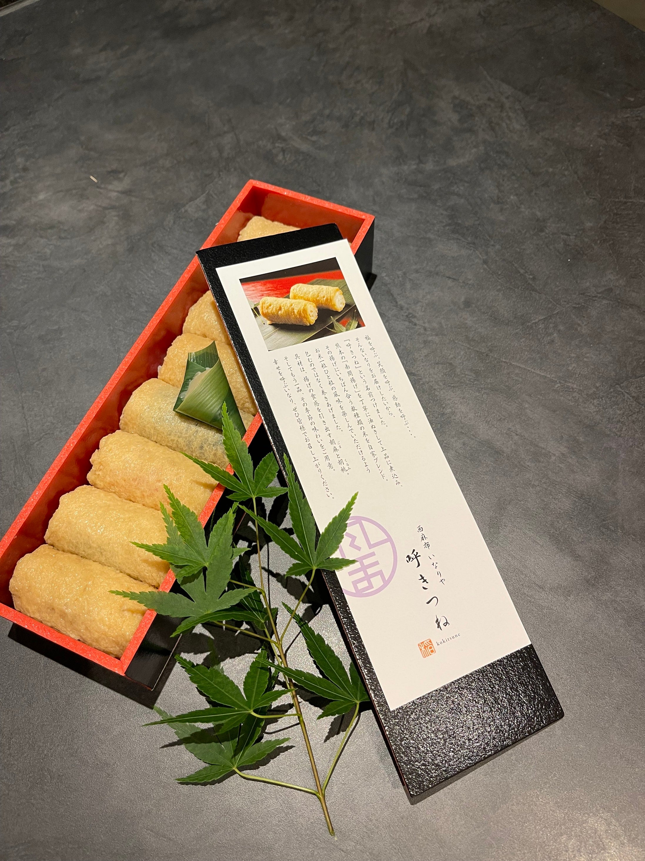 東京では珍しい熊本の南関あげを使用したロールタイプのいなりずし。甘さ控えめ、季節の6種類の具材を楽しみながらお召し上がりあれ!
