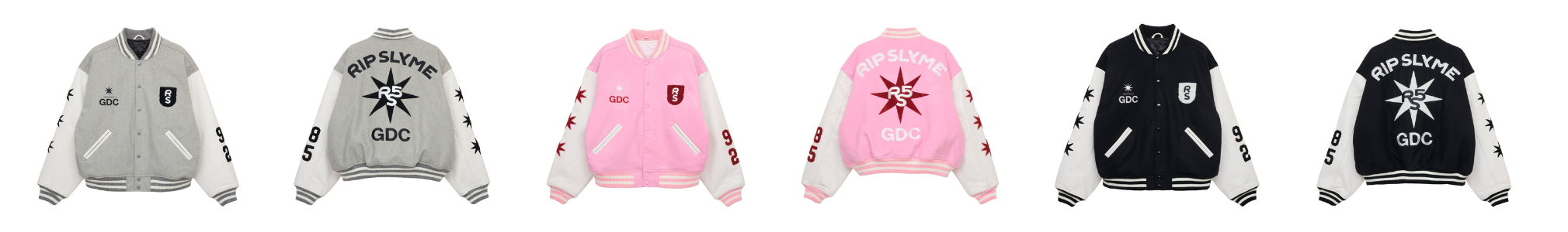 GDCらしいストリートマインドを軸に、ヴィンテージの空気感と現代性を溶け合わせたデザインに、RS5ロゴやGDCの8芒星モチーフを融合させたスペシャルコレクション。ジェンダーを問わず楽しめるカラーリングにもこだわり、ライブフロアでも街でも印象的な存在感を放つアイテムを揃え、デイリーでも、ライブシーンでも、その先の時間までも共に過ごせる全6型を展開します。
