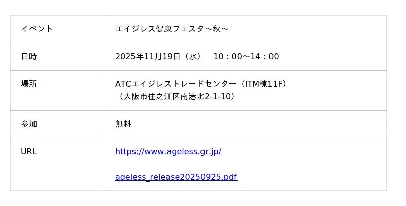 イベント名:エイジレス健康フェスタ~秋~