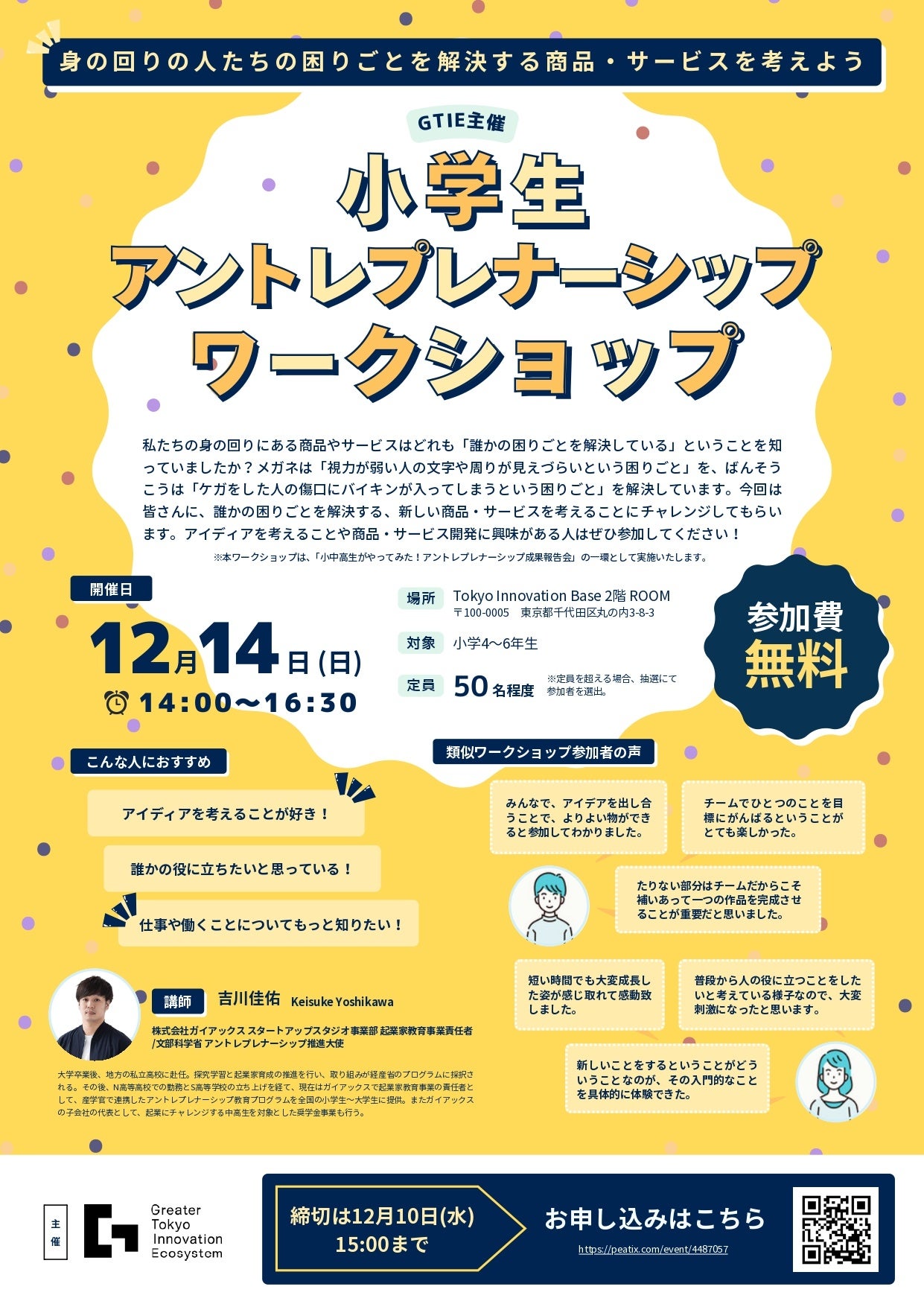 産学官と連携したアントレプレナーシッププログラムを提供する株式会社ガイアックスは、首都圏を中心とした大学等から構成する『世界を変える大学発スタートアップを育てる』プラットフォーム「Greater Tokyo Innovation Ecosystem(GTIE:ジータイ)」と連携し、小学生を対象としたアントレプレナーシップワークショップを開催します。
