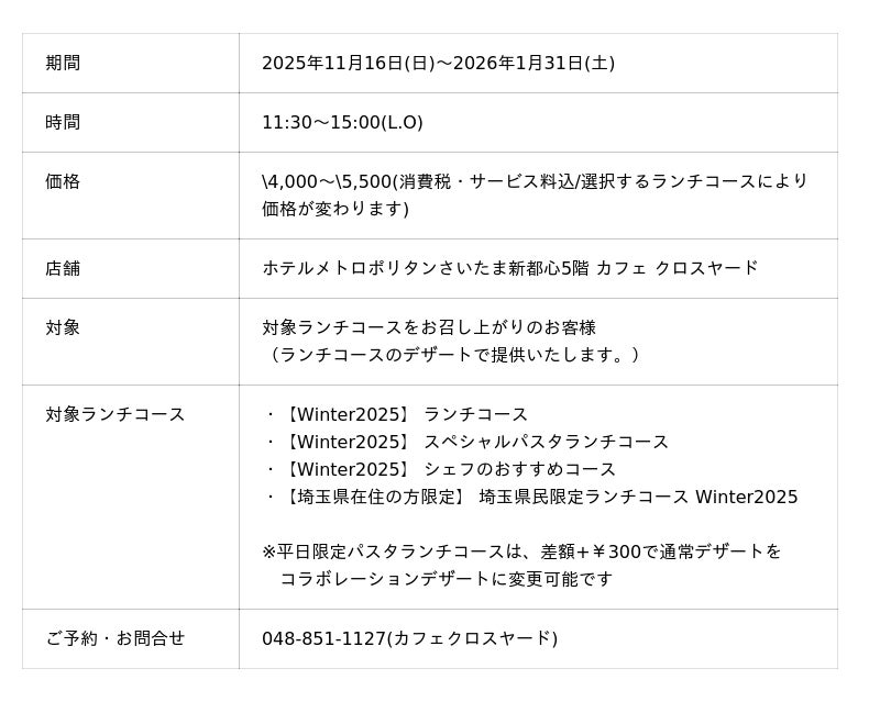 2025年11月16日(日)~2026年1月31日(土)までの期間限定で、月替わりで3種類提供いたします。