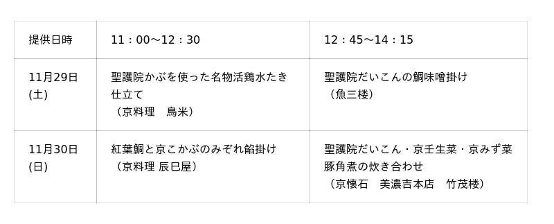 ・京の伝統野菜等を使った老舗料亭の特別料理と京都オリジナル米「京式部」のおにぎりをセットで提供