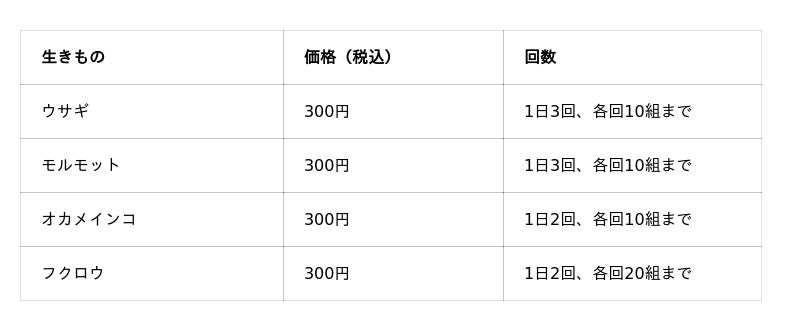・動物の状態により休憩を挟む場合がございます。予めご了承ください。