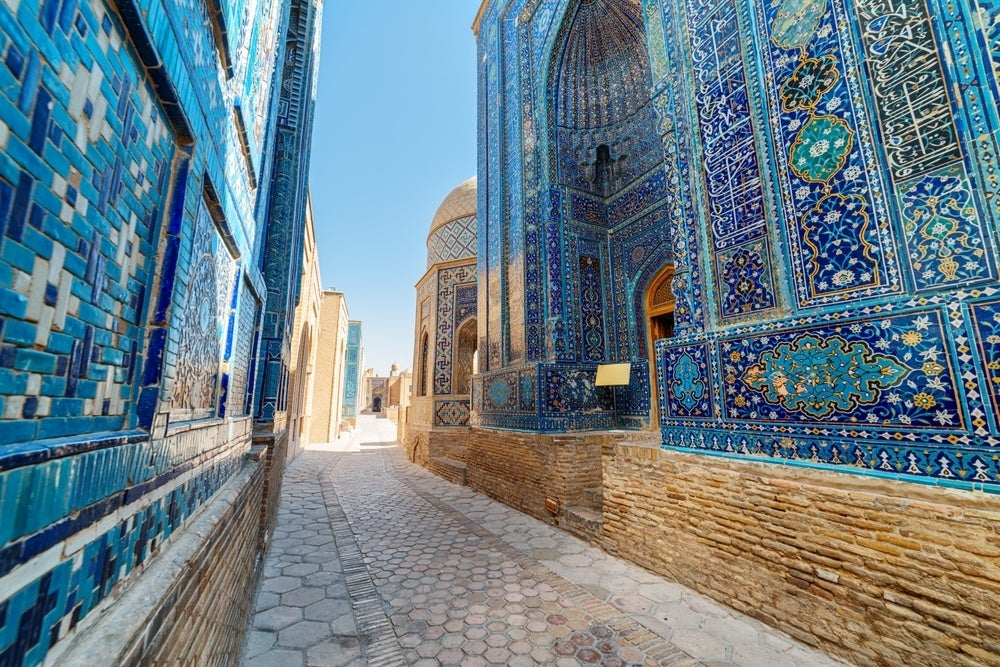 シルクロードの十字路として栄えた古都サマルカンド。青く輝くタイルが織りなす壮麗な建築群は、かつてこの地を支配したティムール王朝の栄華を今に伝えます。政治・経済・文化の中心であったレギスタン広場にはイスラム建築の粋を集めたマドラサ(神学校)が並び、その装飾の緻密さと対称の美は訪れる人々を圧倒します。日没時、黄金の光に照らされてタイルが微かに輝く瞬間、街全体が静かな祈りに包まれるような感覚に満たされるでしょう。交易と文化の交差点として、東西の知恵と美意識が交わったこの街では、歴史そのものが今も息づいています。