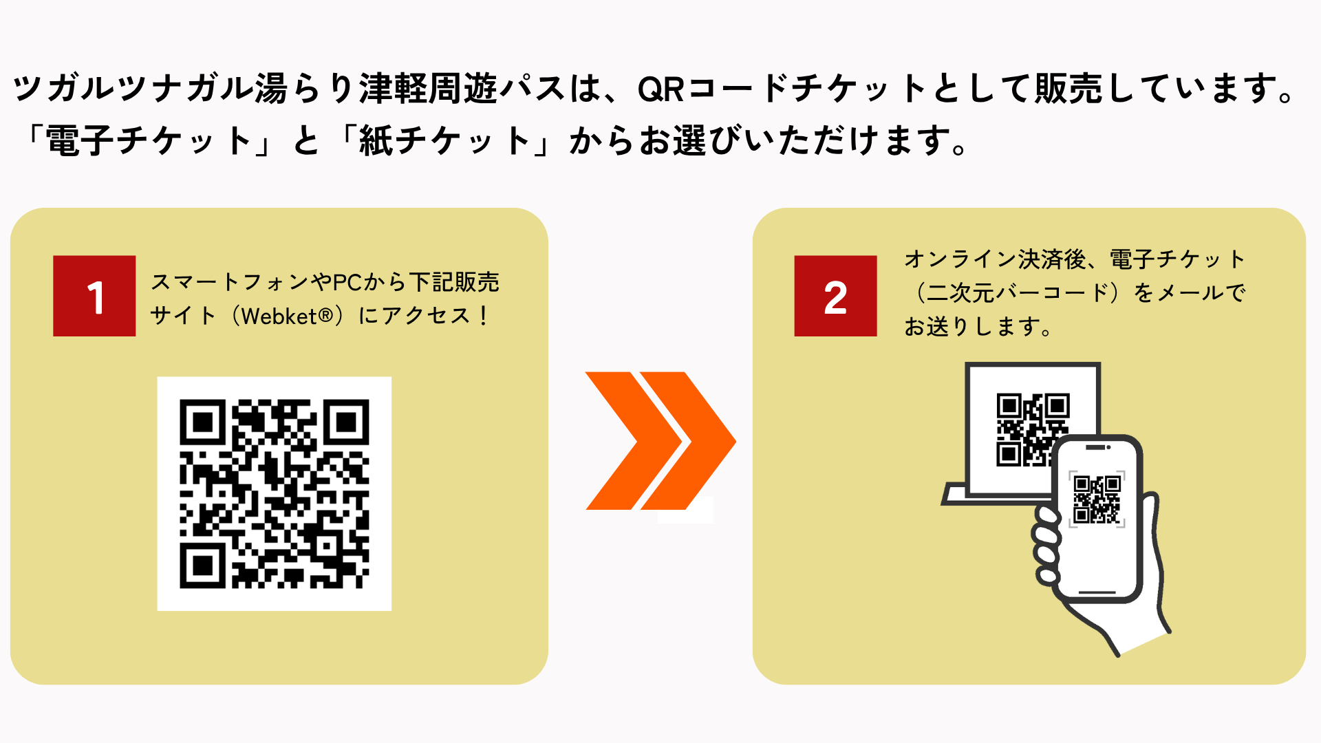 2.オンライン決済後、電子チケット(二次元バーコード)をメールでお送りします。