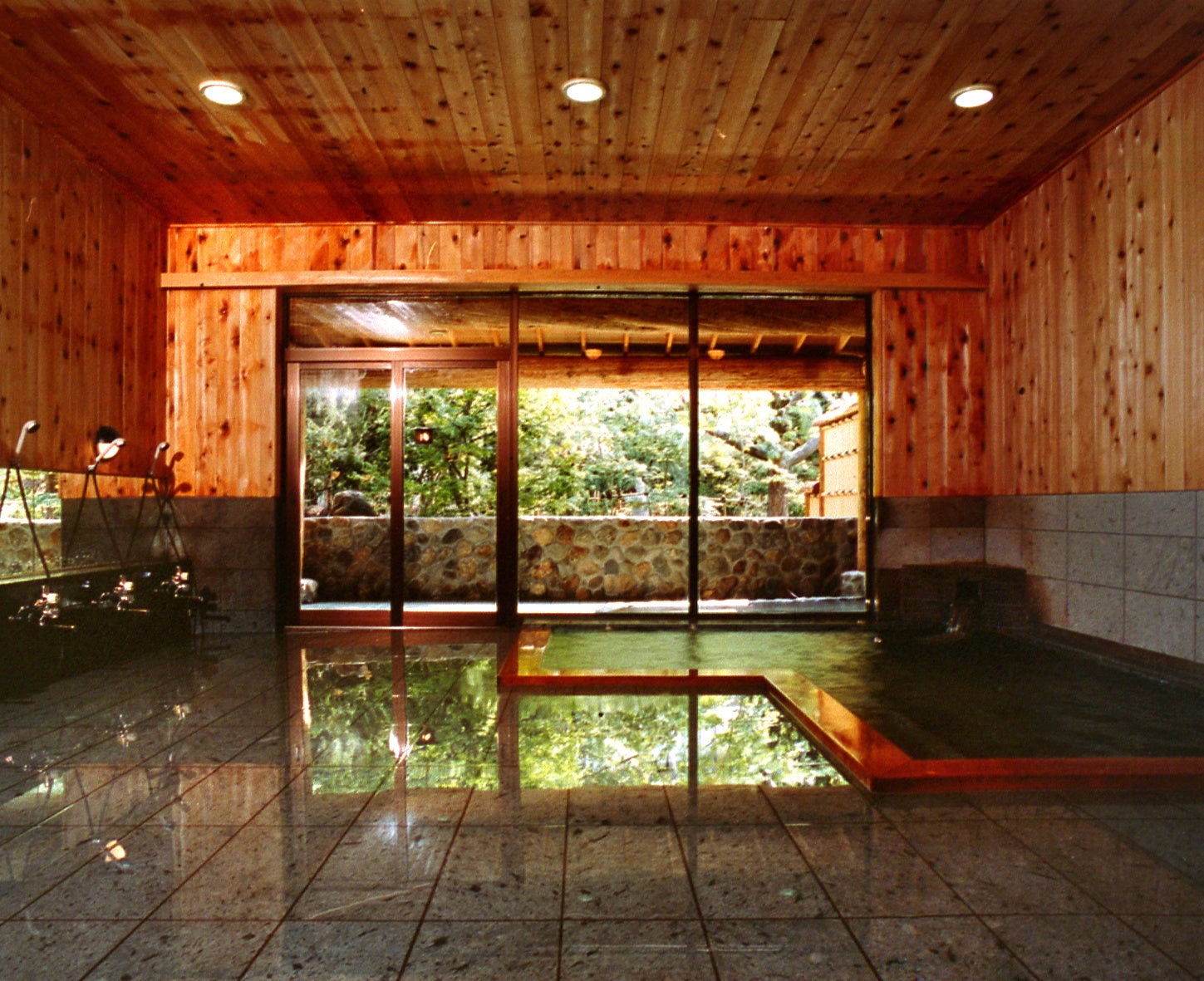 館内は総畳敷きで、大浴場までのアプローチは素足で畳の心地良さを楽しめます。「美肌の湯」と称される天然温泉は、まさに都忘れのひとときが味わえる心地です。