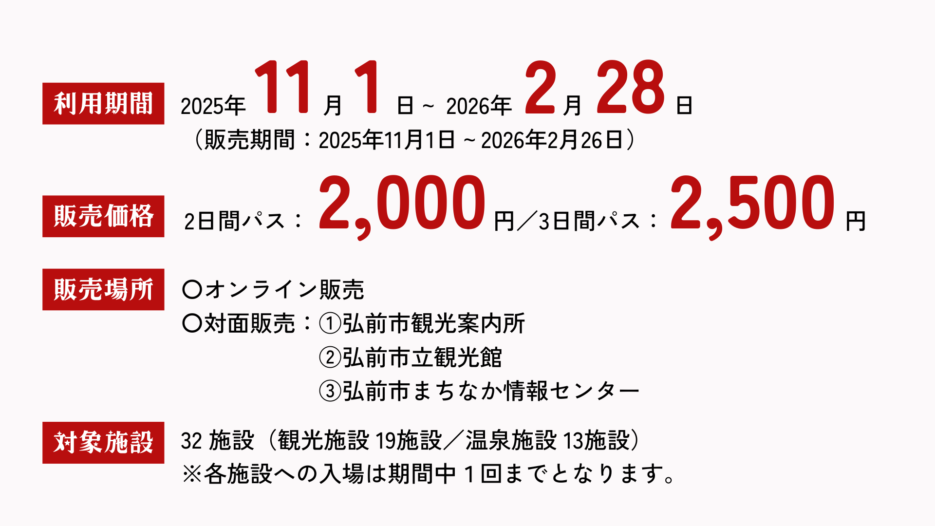 ※各施設への入場は期間中1回までです。(同一施設の複数回利用はできません)