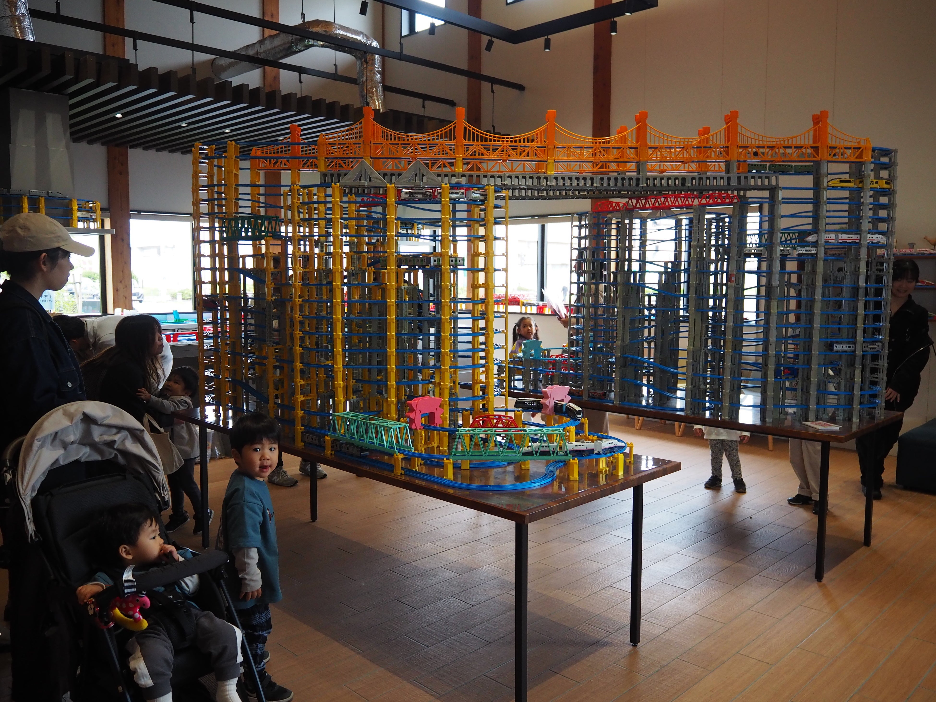 会場にはプラレールの巨大ジオラマも展示されました。数百を超えるレールや橋脚等を使い子どもたちの身長を超えるほどの大きなジオラマが作り上げられ、レールを走るたくさんのプラレールの中には今では廃盤となった貴重な車両も登場し、鉄道好きの子どもたちは目を輝かせていました。