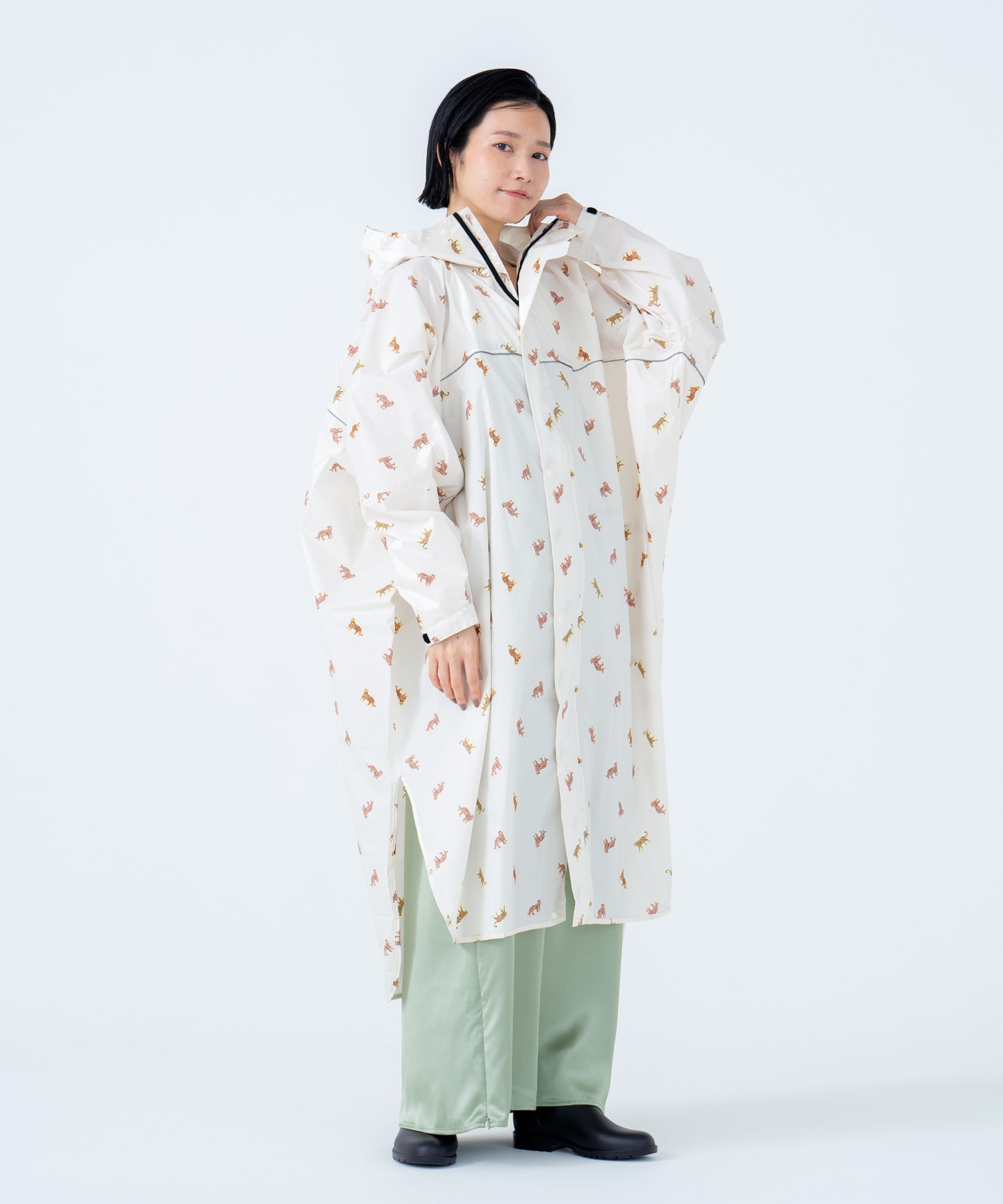 アウトドアシーンはもちろん、自転車に乗ることを考えて開発したレインポンチョです。光を反射させるリフレクターや手の甲が濡れないよう手甲カバーなどが備わっており、毎日の通勤・通学に大活躍。丈が長めなので男性の着用も可能です。