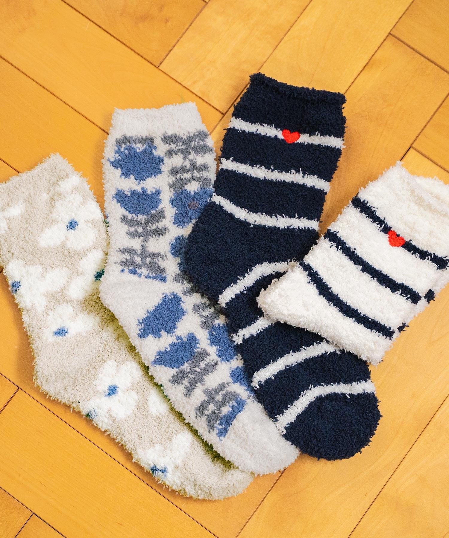 花柄やハートのワンポイントなどデザインが豊富なもこもこふわふわルームソックス。おうち時間が増えるこれからの季節、手軽な温活アイテムとして足元を温めてくれるだけでなく、ほっこりかわいいデザインで気分もぽかぽか。