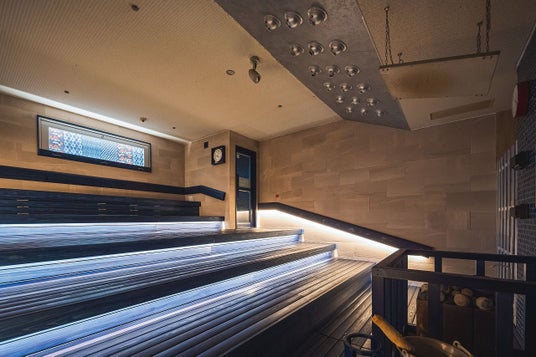 室温は90℃に設定され、青い照明に包まれた静謐な空間で心を落ち着け、じっくりとサウナに集中できます。