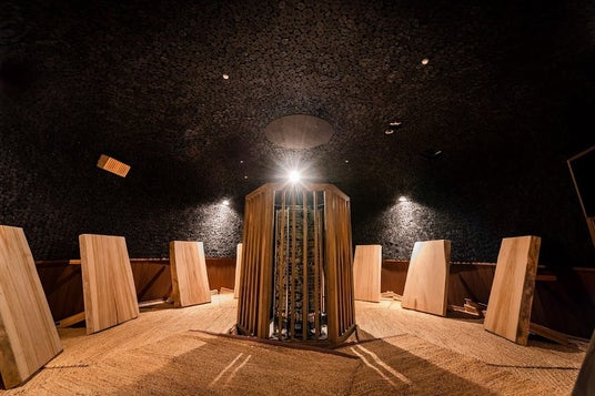 室温は110℃の超高温設定で、生存本能を呼び覚ますような圧倒的な熱を体験できます。赤いライトに照らされた空間には、二本角の赤鬼瓦が設置され、灼熱の熱気の中で雑念を払い、無心でサウナに没頭できます。