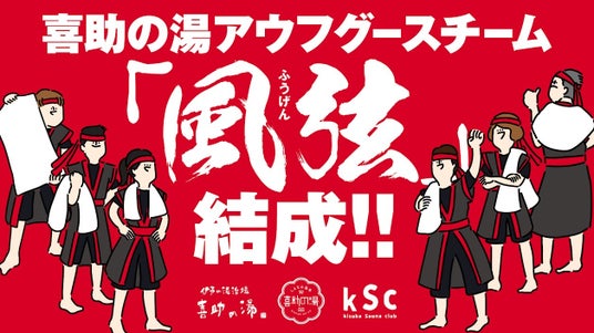 『風弦』は、2024年11月に結成された喜助の湯公式アウフグースチームです。チーム名には「風を楽器の弦のように操り、音楽のように心地よい熱波を届けたい」という想いが込められています。