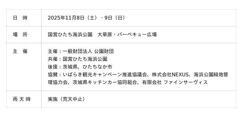 食”と“体験”をテーマとしたアウトドアイベント 「海・花そとあそび2025」 を開催します(国営ひたち海浜公園)