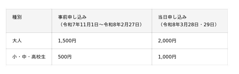 <日時>令和8年3月28日(土)、29日(日) 11時から16時まで