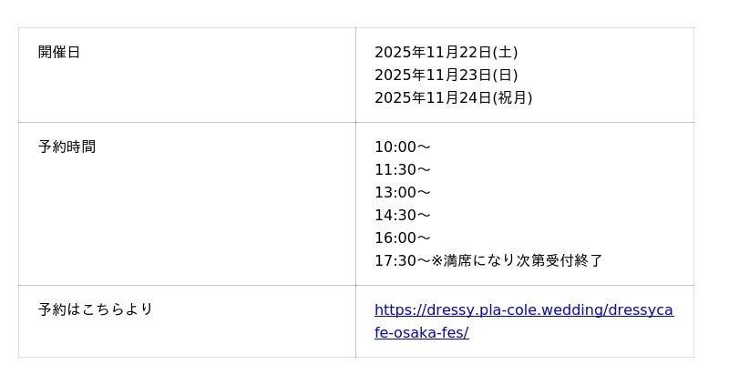 【11/22(土)~11/24(祝月)限定開催】ウェディング初体験フェス in 大阪