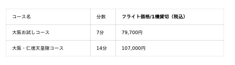 ※機体は貸切で、定員は3名様