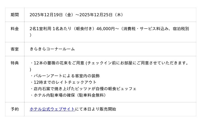 宿泊プラン「クリスマスプロポーズプラン」(イメージ)