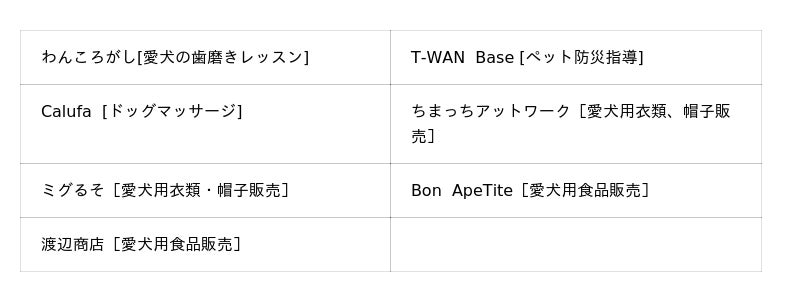 ハンドメイドの洋服や雑貨、素材にこだわった愛犬用おやつの販売、ドッグマッサージ、歯磨きレッスンの体験など、この日限定で7店舗が出店いたします。