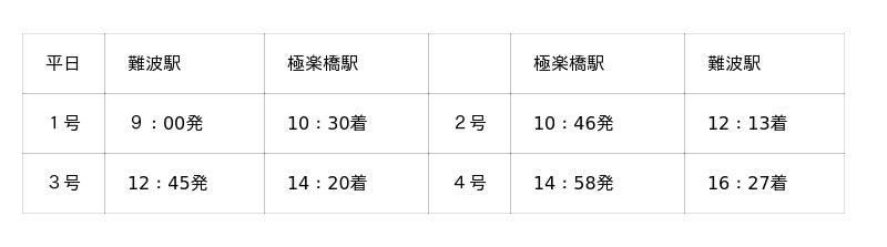 1.難波・新今宮・天下茶屋・堺東⇔極楽橋
