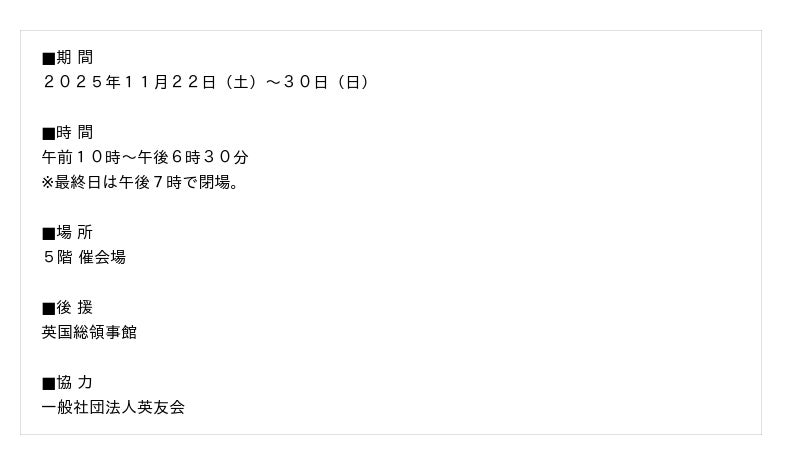 近鉄百貨店四日市店におきまして、英国をテーマにしたイベント「英国展」を開催いたします。
