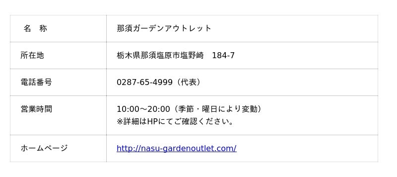 那須ガーデンアウトレット マネジメントオフィス (担当:水谷)
